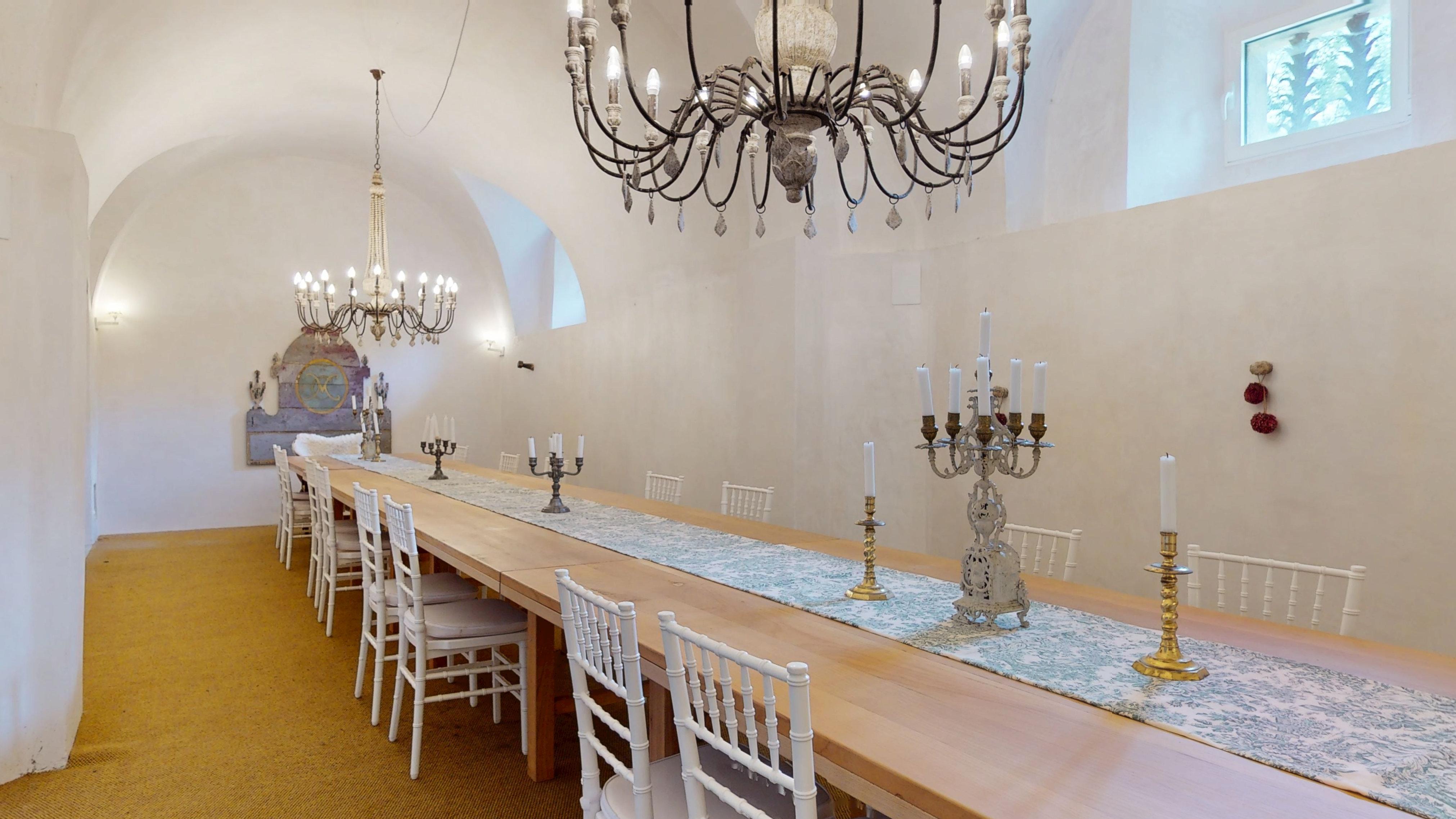 El interior del Cavaller confirma lo que su presencia exterior ya insinúa: es una casa concebida para vivir, reunirse y protegerse, una arquitectura que combina refugio y representación. Cada espacio —desde los antiguos ámbitos agrícolas hoy transformados en salas culturales hasta los salones nobles donde la luz entra generosa— revela una vocación de convivencia y una elegancia poco habitual en la montaña catalana.